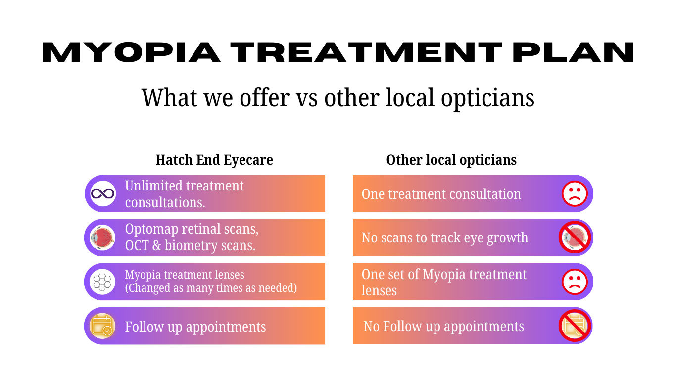 We offer customised treatment programs to help manage the progression of your childs myopia. Here is what we offer…